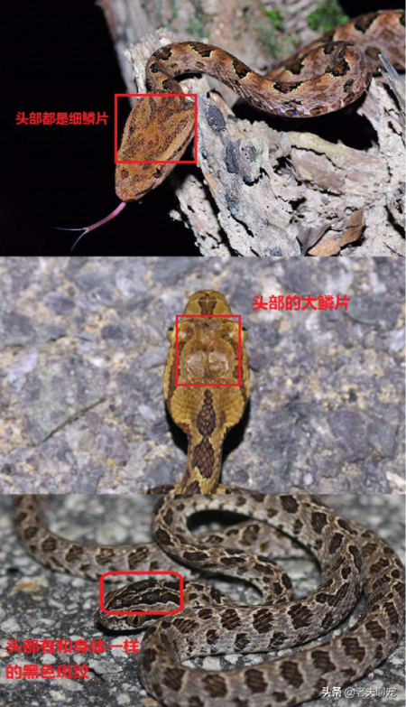 其实很简单,首先它们在头部上的鳞片的区别就不小。
