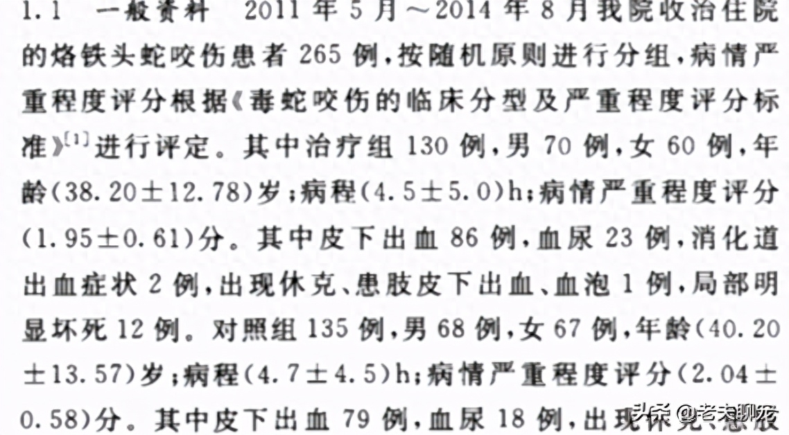在历年来的原矛头蝮咬伤病例中,局部坏死的人数有27例,占所有咬伤的10.5%,这个数据较之舟山眼镜蛇60%坏死率可以说是相对较低的。