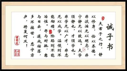 夫君子之行,静以修身,俭以养德。非淡泊无以明志,非宁静无以致远。夫学须静也,才须学也,非学无以广才,非志无以成学。淫慢则不能励精,险躁则不能治性。年与时驰,意与日去,遂成枯落,多不接世,悲守穷庐,将复何及!