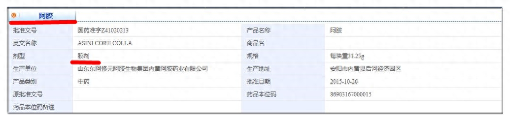 阿胶,批准文号为Z41020213,类型是胶剂。