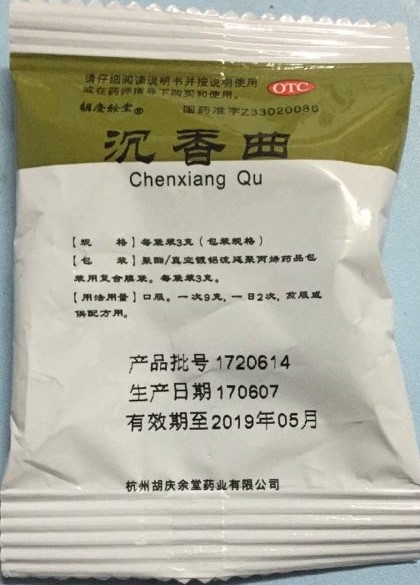 可以看到,这个沉香曲是袋装的,国药准字Z33020086,右上角还印着甲类非处方药的标志(红色OTC),这些信息是不是与中成药很像?是的。但是仅仅“很像”是不够的,我们应该更进一步把这个事说清楚。