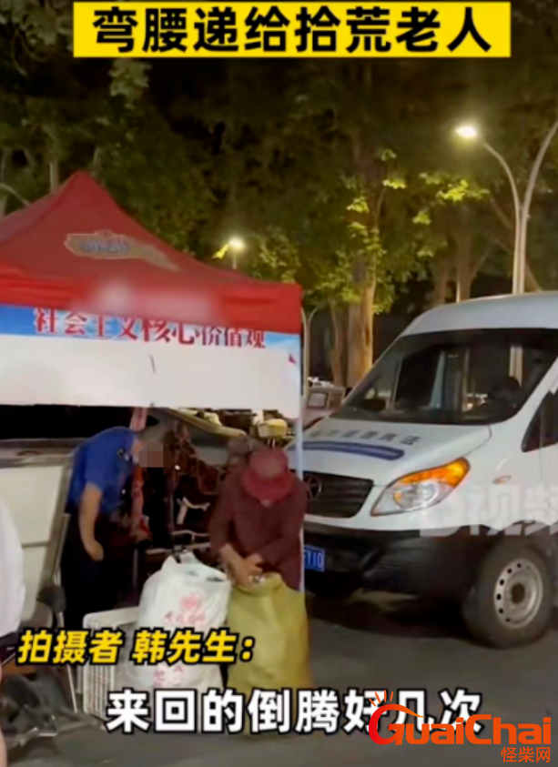老奶奶不慌不忙,因为城管也正在帮她捡。来回折腾好几遍,还亲自递到老人手里。