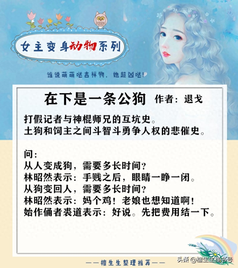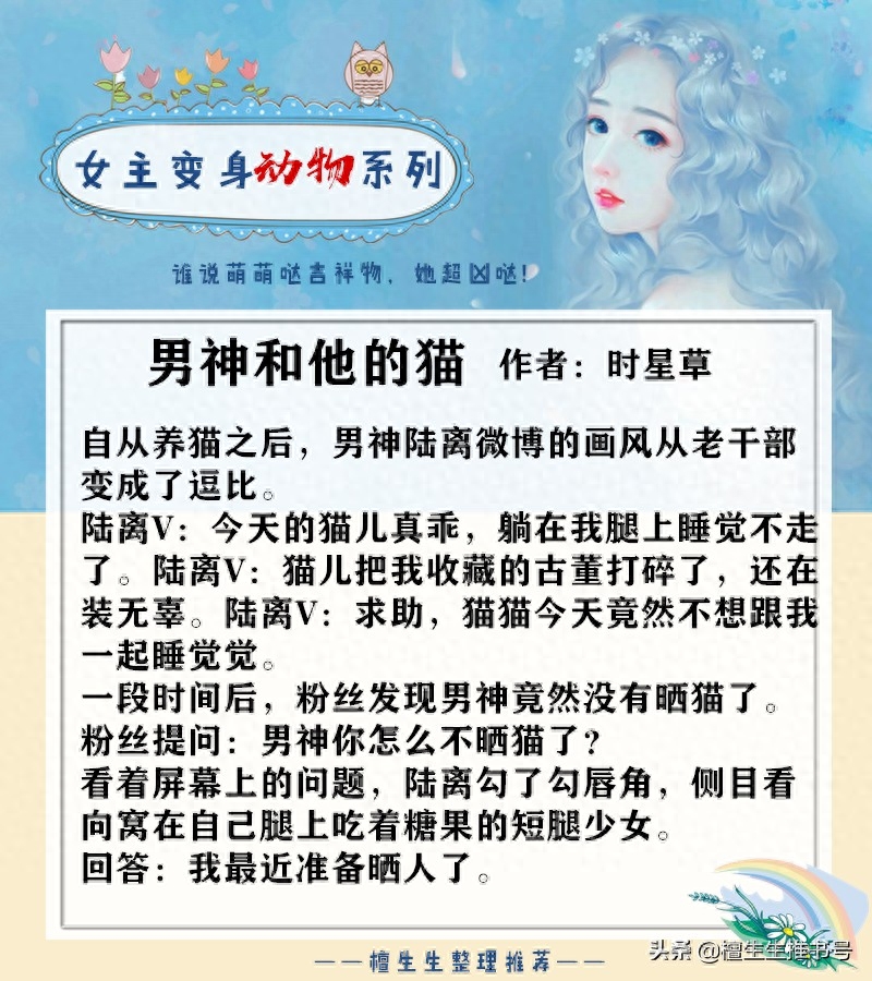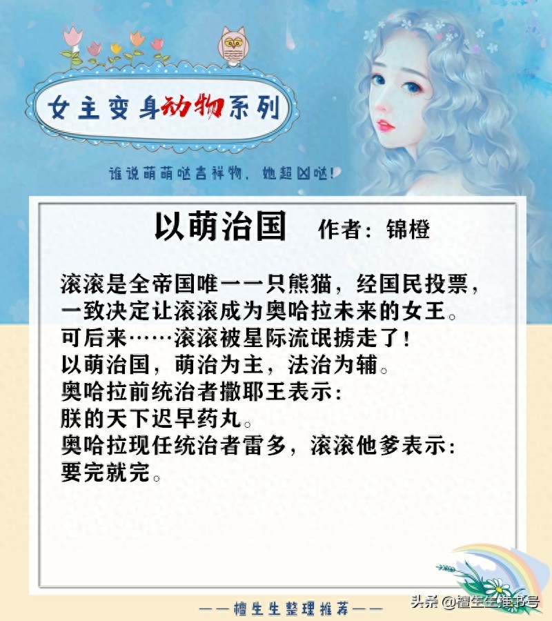 强推几本女主变成身动物的言情文吧,看我们奶凶又呆萌的女主如何以萌制人,软化刚铁直男的心,使他拜倒在她雄厚的皮毛之下。