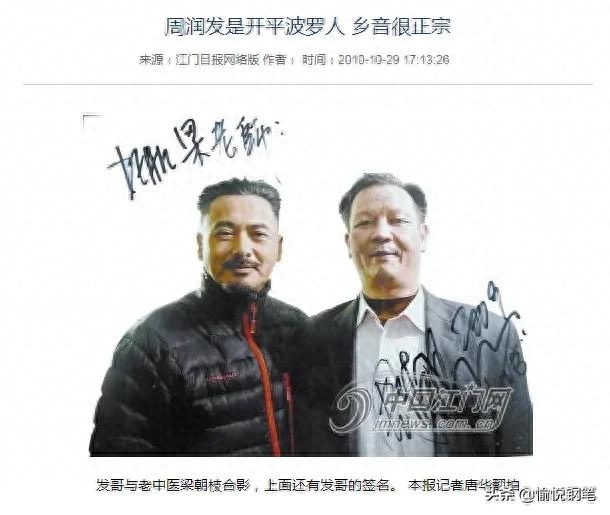 这篇报道还提到,周润发的堂兄周润明(开平长沙旅居印尼侨胞)向江门乡亲介绍过,周润发祖籍是开平长沙,并向乡亲介绍周润发的成长经历。