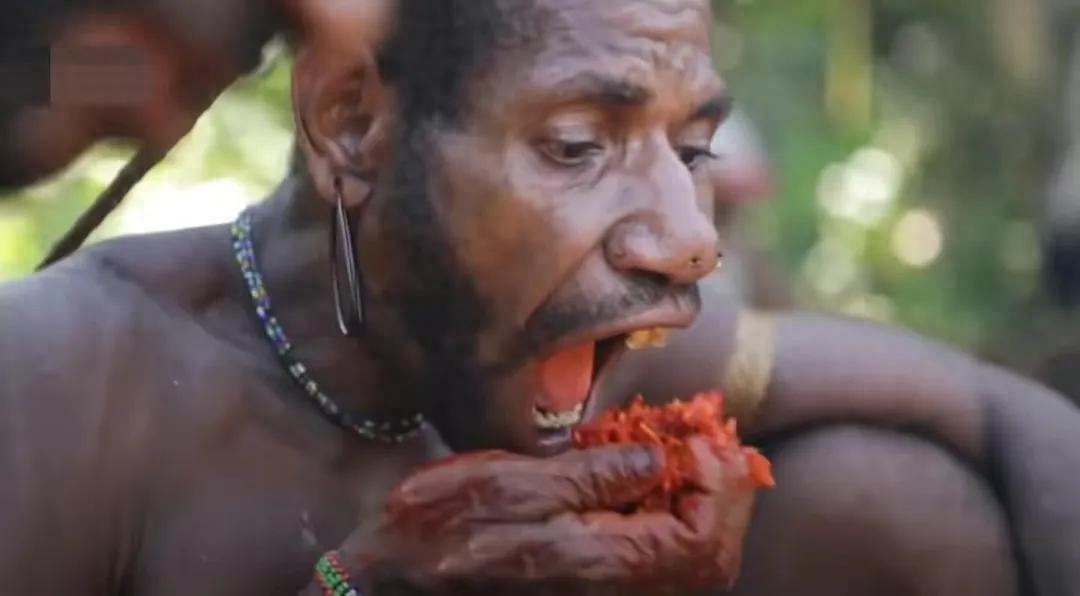他们是生活在新几内亚岛上科罗威人,一个被外界称为“食人族”的部落,多年来,一直流传科罗威人的恐怖习俗,而每次看到他们吃东西,都是满嘴鲜红,更加坐实了这一观点。