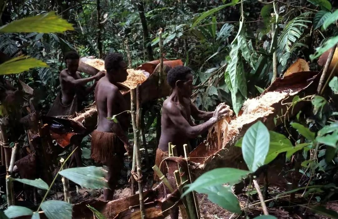 除了正常的狩猎动物以外,他们还会采集各种水果和植物根茎,最喜欢的是西谷椰子树,不仅树上的西谷可以当水果吃,椰子树干压碎后还能得到大量的淀粉,能做出各种食物。