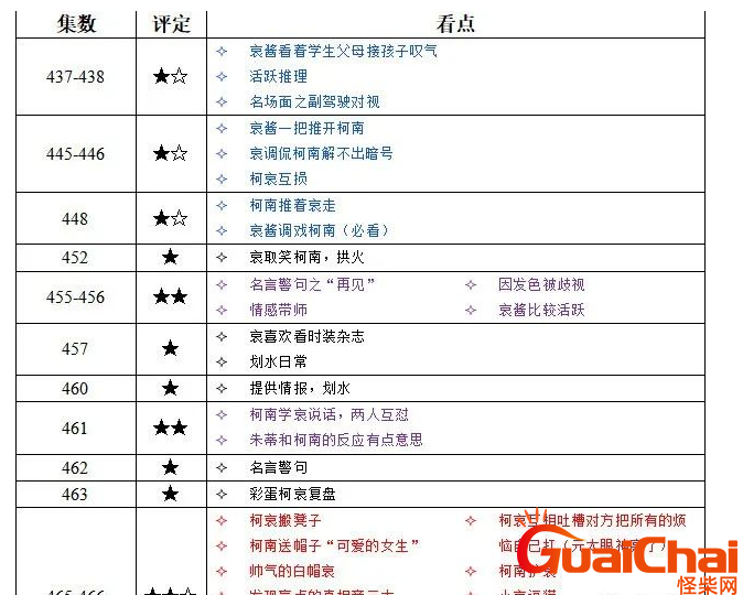 最后,分享下柯哀党们必看的集数,其中评价标准是哀的活跃程度和柯哀的甜度