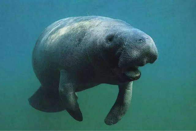 其实海牛看起来还是挺萌萌哒,它的身形巨大,它的体长可以达到3-4米,是个名副其实的"大胖子",不过在海水里浮力可以很好帮助它们减轻体重带来的负担。