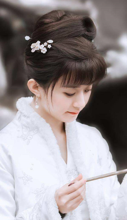 未出阁的少女发型,一般只是把头顶上面的头发盘起来,简单修饰后,后面的头发一般披下来,额头部分留一些齐刘海,原来古人也讲究减龄效果。