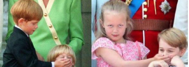 乔治和哈里的关系一直很亲密,性格淘气的哈里和乔治相处十分愉快,神奇的是乔治在英国王室大阅兵上面被表姐捂住了嘴巴,而这一幕在二十多年前夜曾发生在哈里王子身上。哈里王子在童年十分调皮,只有戴安娜才能管住他。哈里王子在白金汉宫的阳台上伸手捂住比阿特丽斯公主的嘴。是不是非常有缘分的一幕呢?