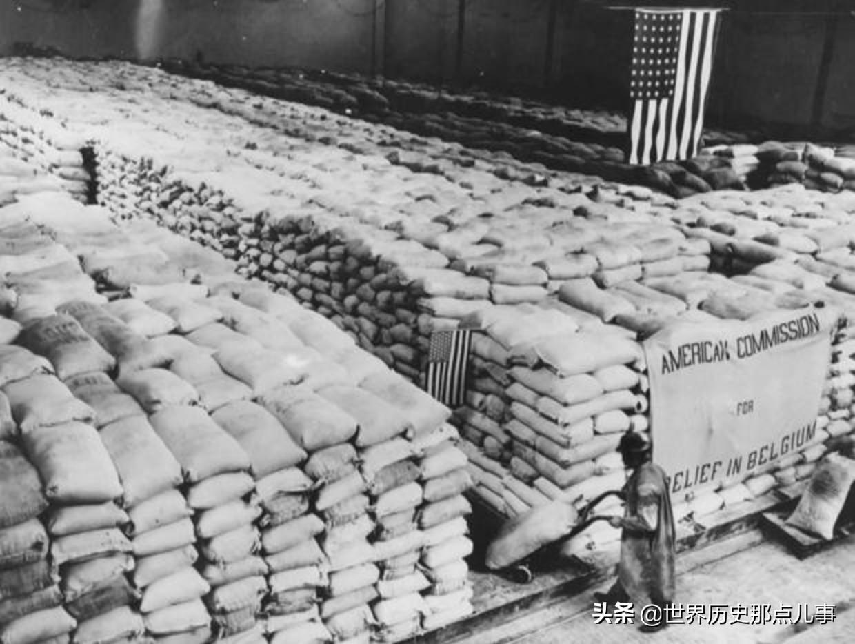 一战期间,胡佛组织援助比利时的粮食。