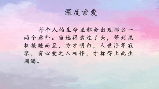 他坚如磐石,可她成为了她唯一的软肋。他用他的全部去护她的安好,互相成全,爱一个人如果成为一种信仰,被人辜负,就会痛不欲生。幸好,幸好。她终是遇见了他,从此人间尽是欢与乐。唐家易少成绝响,人间不见何以琛,真心好看,强烈推荐!