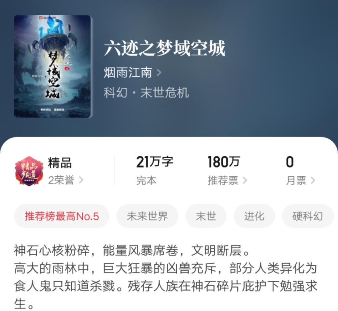 起点月票榜两百名开外,大神烟雨江南的这本新书你还有在看吗?