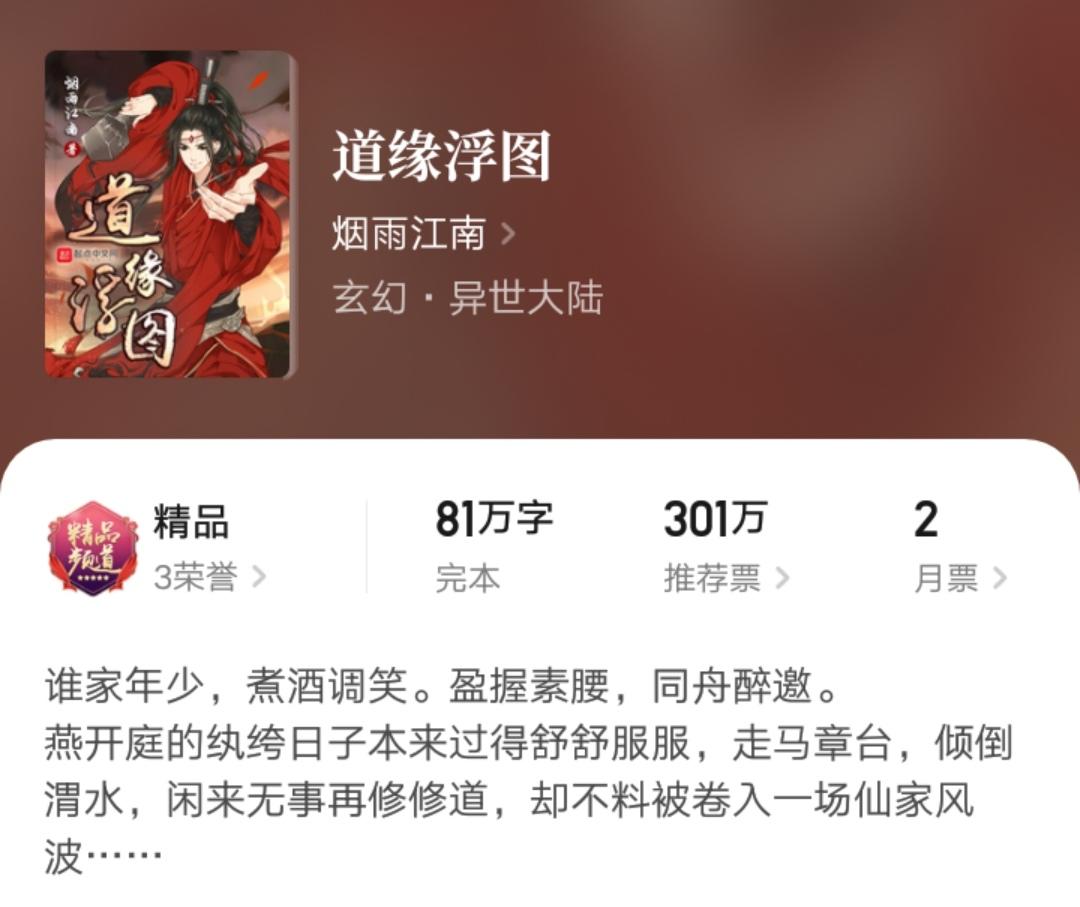 第二本则是《道缘浮图》,他用七个多月的时间,写了八十一万字。虽然成绩精品,但更多地还是老读者的支持,总体上同样没什么反响,如今更是没见人讨论过。
