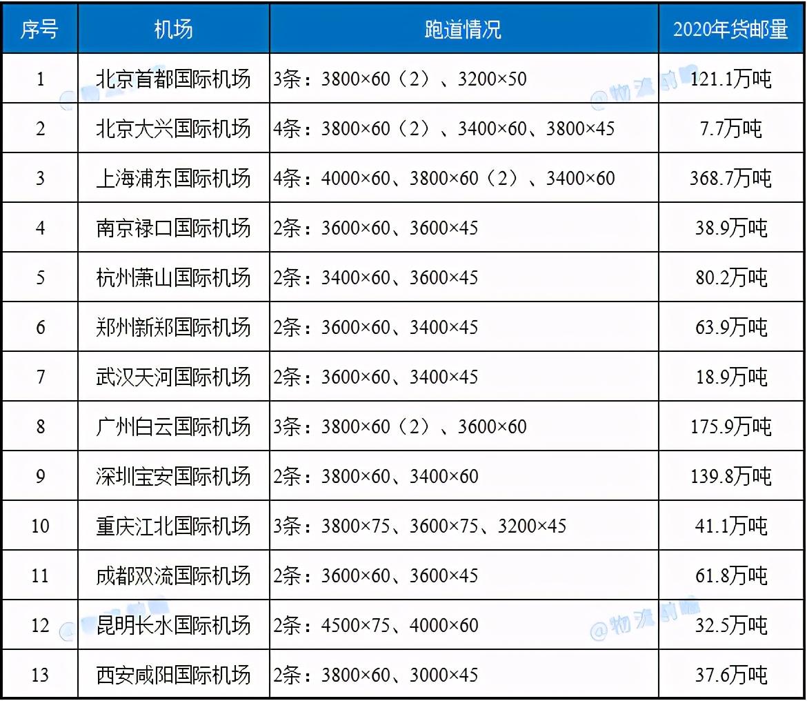 到2020年底,全国(不含港澳台地区)共有241座民航机场,包括13座4F级、38座4E级、38座4D级、147座4C级、4座3C级和1座1B级。其中,我国13座4F级位于12座城市。此外,青岛胶东国际机场(4F级)2020年12月完成校飞,今年3月启动试运营。