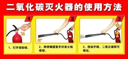 图书馆一般配备的灭火器就是二氧化碳灭火器啦,其适用于各种易燃、可燃液体和可燃气体火灾,还可扑救仪器仪表、图书档案和低压电器设备以及600伏以下的电器初起火灾。二氧化碳灭火器有开关式和闸刀式两种。使用时,先拔去保险销,然后一手握住喷射喇叭上的木柄,一手按动鸭舌开关或旋转开关,最后提握器身灭火。