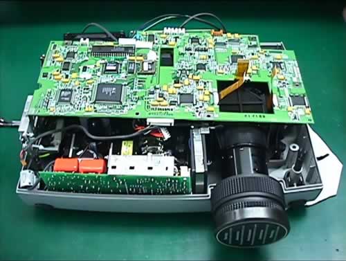 成像原理:光源发出的白光照射到一片全彩的、投射式的LCD液晶屏上,通过投影镜头将LCD液晶屏的图放大投射到屏幕上,