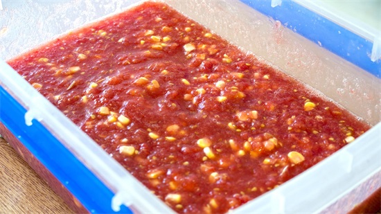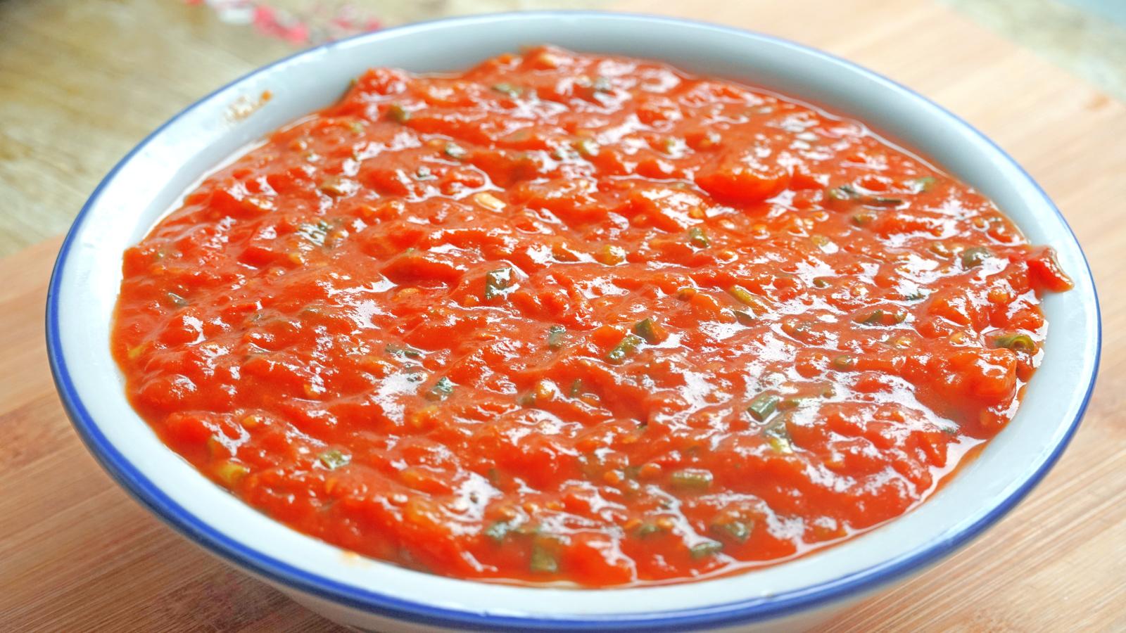 以前没有冰箱的时候我们都是这样保存的,现在虽然有了冰箱,但还是会做一些放起来,即使超市一年四季都能买到西红柿,但只有这个时候的西红柿是应季节的,反季节的新鲜西红柿口感都没有这个味道好,吃的时候用葱花一炒,配上辣椒、蒜泥、香菜,味道美极了,或者是做卤汁都非常的香。