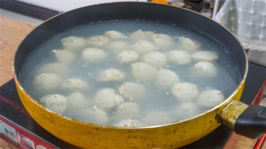 小火慢慢地煮,煮至丸子全部飘起来后就可以捞出来了;