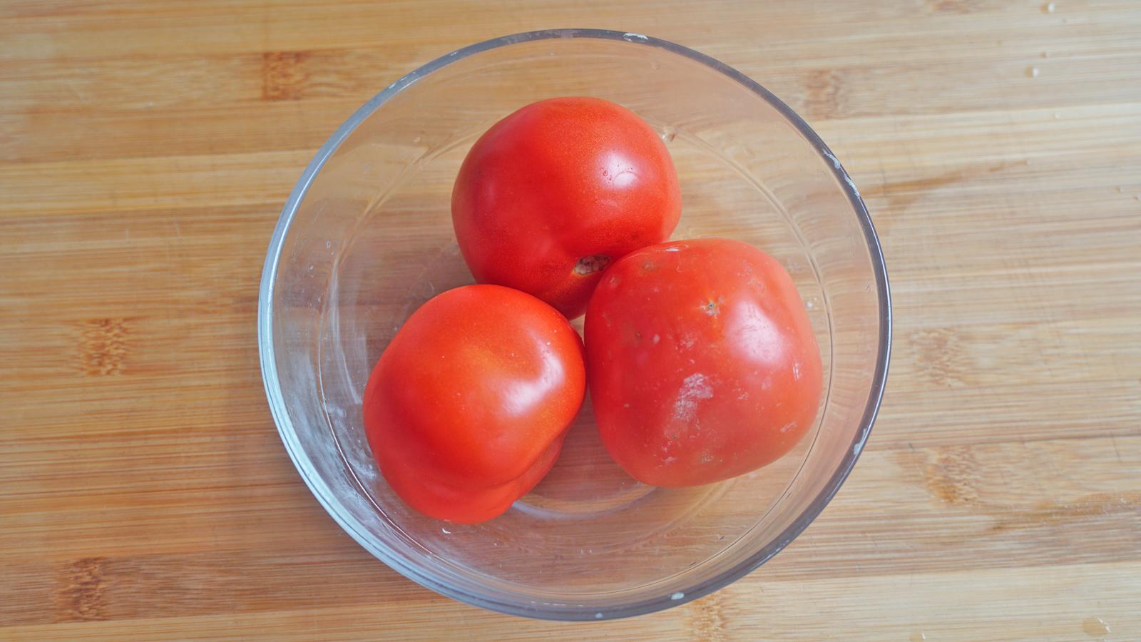 5、接着我们来煮汤,3个西红柿洗净后切小块儿;