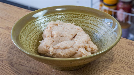 1、2块儿鸡胸肉先切小块儿,然后加到绞肉机中打成泥,先盛出来;