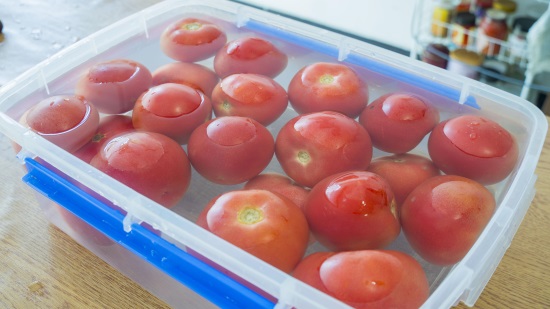 2、十分钟以后再来清洗,我们把每一个西红柿的表面都搓一搓,这样洗的更干净,然后放到晾架上晾干表面的水份;