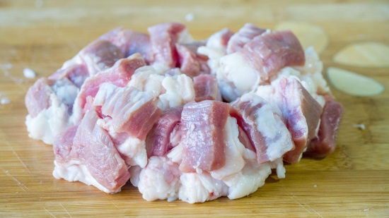 2、鸡脯肉切块,打一个鸡蛋,只要蛋清;