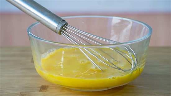 搅散后加一勺盐,大半碗温水,鸡蛋打散后密度比水大,会沉淀,我们放入少量盐后密度会相当,就不至于沉淀,所以再加入温烫的水,才能使蛋液更好的凝固起来,撇去浮沫;