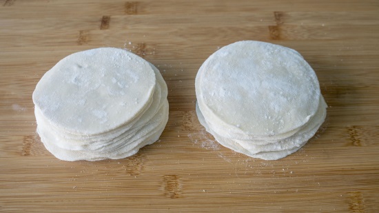 7、醒好后的面团儿取出来简单揉一揉,搓长条后分成小面剂,先压扁再擀面,擀开擀圆,饺子皮全部擀好开始包