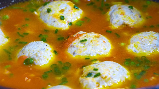 7、然后下鸡肉丸子,盖上继续煮5分钟让丸子入味儿,出锅前撒上小葱花,酸爽鲜嫩的鸡肉丸子汤就做好了。