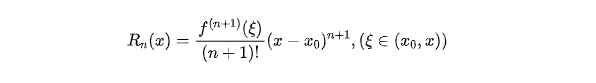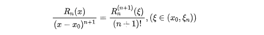 R_n(x) ,我们称它为拉格朗日余项。我们也可以简写为 o[(x-x0)^n] ,它称为佩亚诺型余项,其实和拉格朗日余项是一回事,只是写的形式不同。