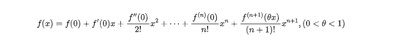 我们如果令 x0 = 0 的话,还可以将式子进一步化简。由于 ξ 在0和x中间,所以我们可以令 ξ = θx,原公式可以写成:
