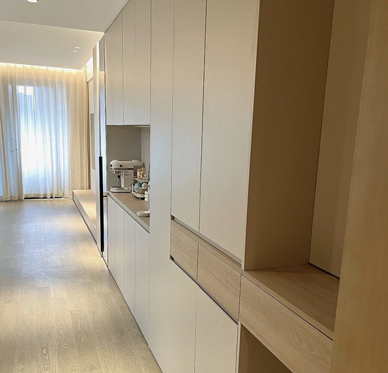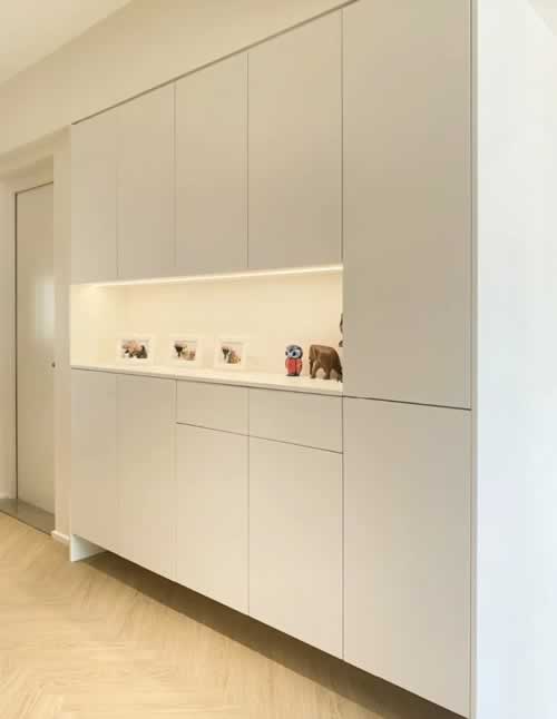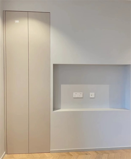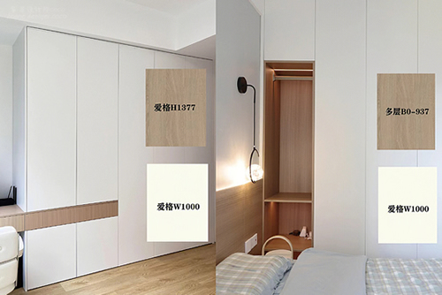 所以,如果想要做一门到顶的柜门,高于2.44m的话,只有爱格板才能实现,相比较而言其美观性要高于普通的板材。