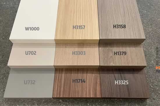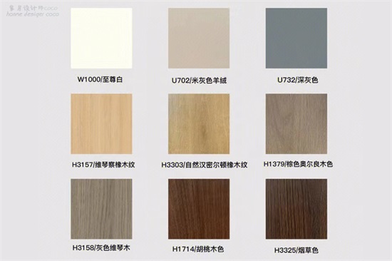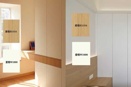 爱格板的有上百种色号,容易搭配,尤其是木材的纹理清晰逼真,其他的板材根本抄袭不了。