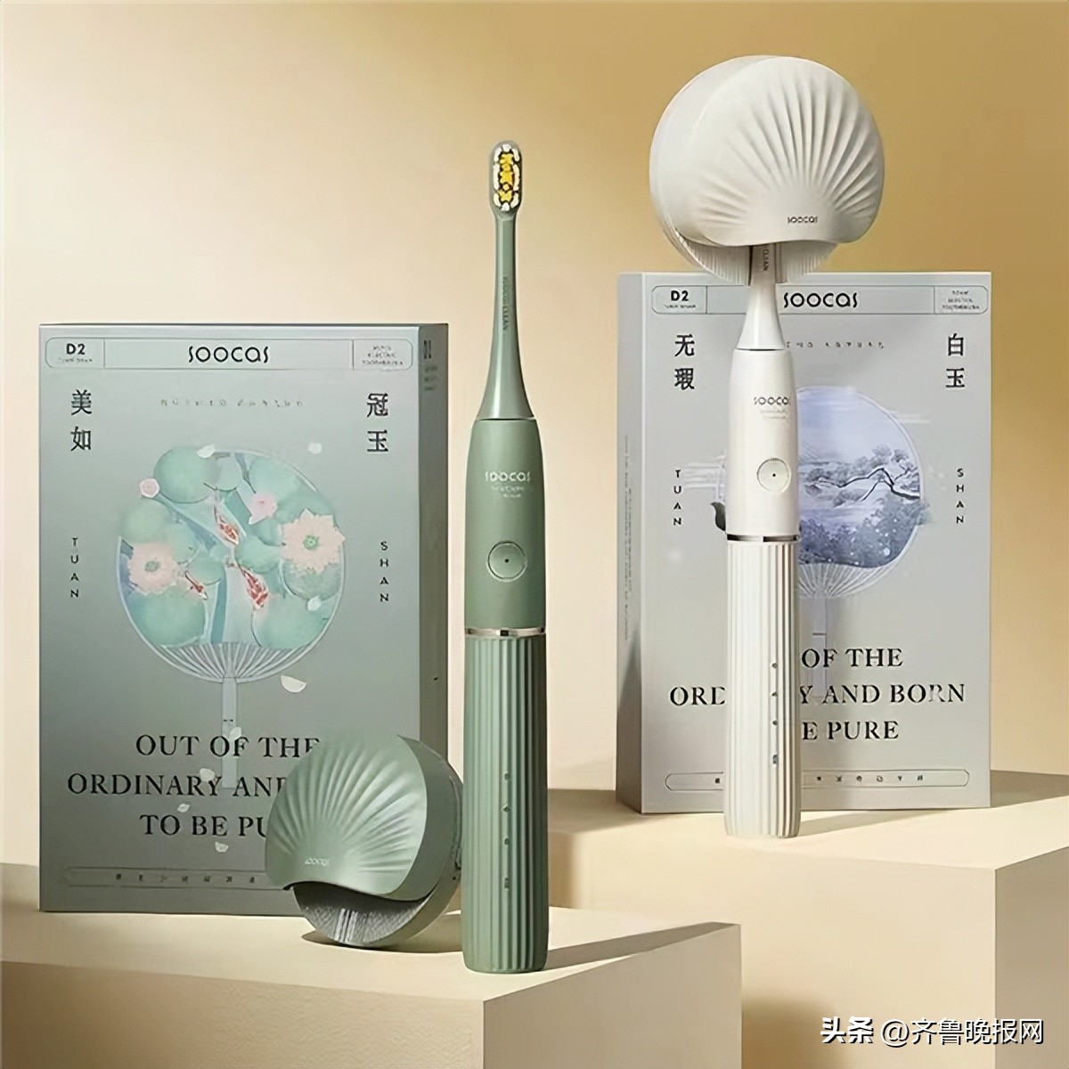 素士声波电动牙刷的造型萌宠可爱,女士都很喜欢他家的产品。在配色上,素士善用国风青山白玉传承,打造了润玉白、青黛绿两种色彩,古风韵味扑面而来,让人爱不释手。