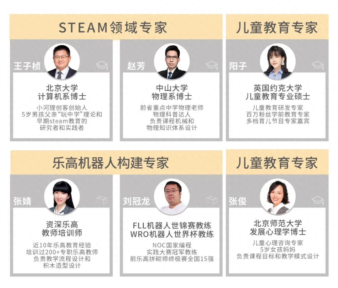 知道大家最关心师资,喵妈也特意了解了一下。作为专做线上STEAM教育的机构,小河狸创客的教研团队很硬核,北大计算机博士、物理博士,儿童心理学专家,数学名师、机器人大赛金牌教练、学前教育专家……都是有着多学科背景的学霸们。