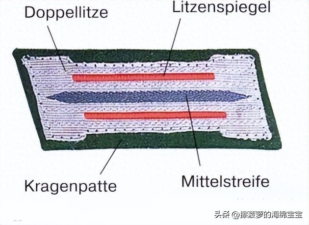 在19世纪的德国部队中,近卫军团和其他精英军团都佩戴环绕整个或部分衣领的双编带(Doppellitze)装饰来作为区别。到了一战中期,这些华丽的衣领装饰逐渐转变为两端相连的短编带,刺绣在衣领的领章之上。1921年魏玛防卫军成立之后,编带领章(Litzen)正式成为了除将官外的所有官兵的通用识别军衔标志。
