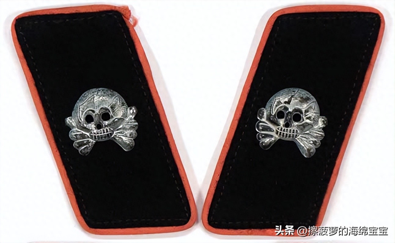 1943年1月正式全面取消骷髅领章,军官使用标准陆军领章,士兵的领章加上深蓝绿色底布,并带有红色滚边。