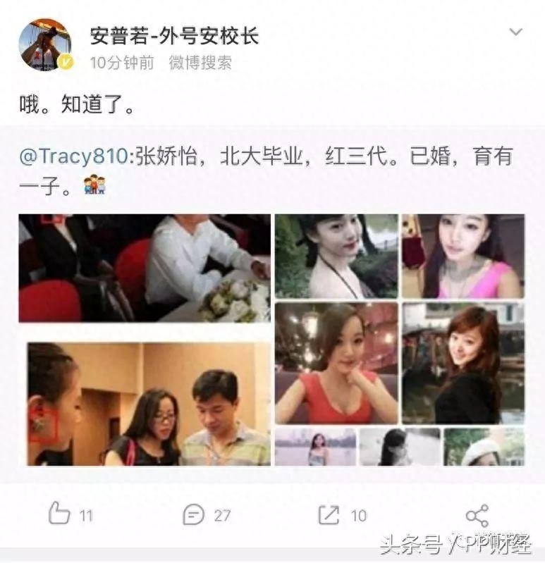 爆料中的“小三”网传是一个叫张姣怡的妹子,北大毕业,曾作为北大新传的校花上过天天向上。