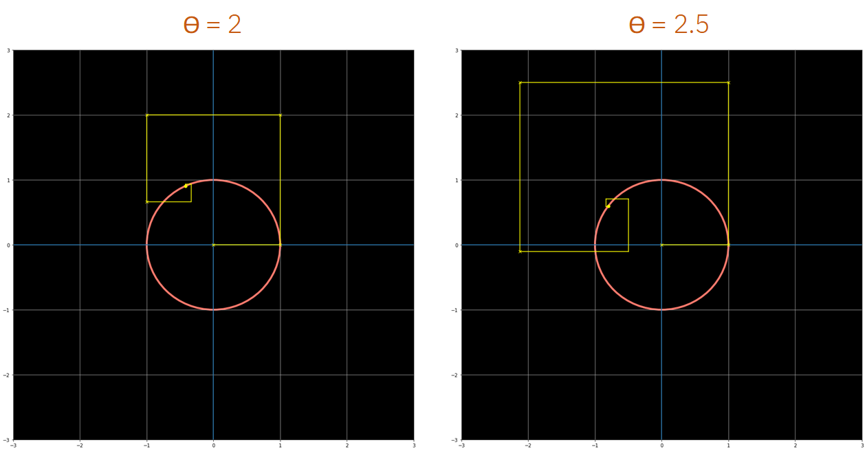 如果我们使用足够的多项式级数的项exp(iθ) 最终总是在单位圆上,绕着它旋转了一个弧度。