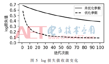 实验验证了上述模型交叉验证方法,根据S-CV算法选择得到的参数见表3。整体log损失值随迭代次数的收敛变化如图5所示。