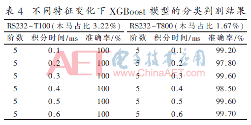 为了验证基于XGBoost的硬件木马检测方法的健壮性,作不同特征变化下分类判别实验。表4给出了不同木马面积和不同积分时间下的木马检测结果。