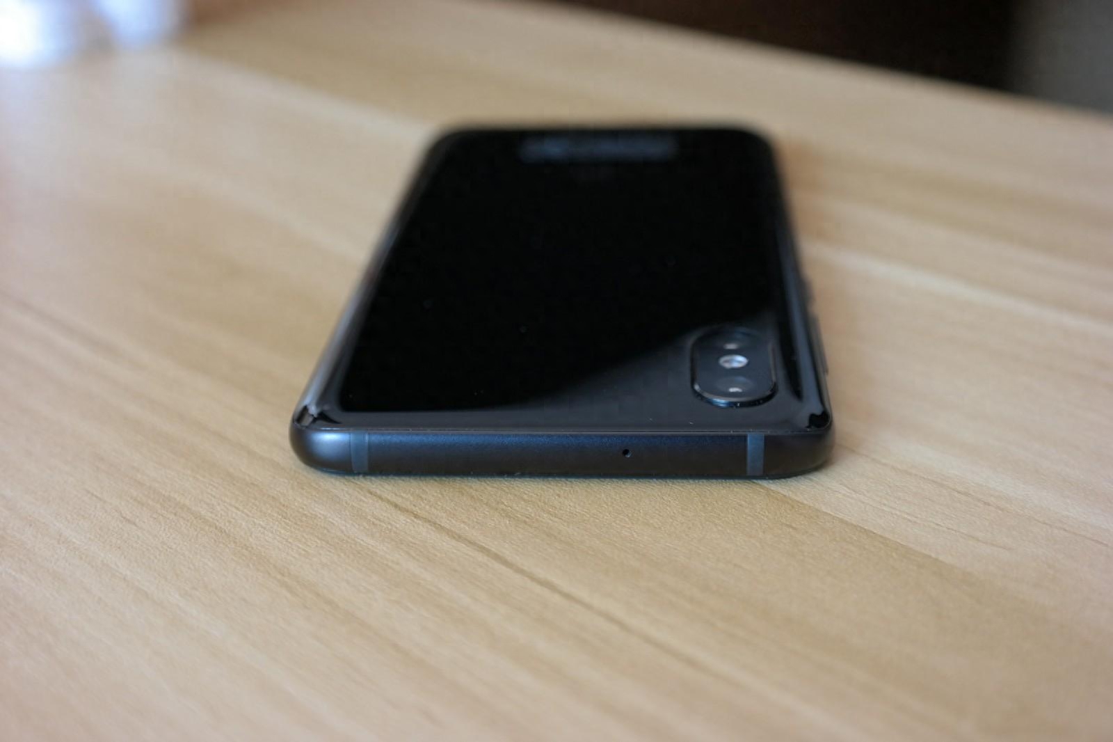 ↑ 小米8屏幕指纹版附送的黑化透明硅胶壳,开孔等各方面都非常完美,文明用语尴尬的地方就是与摄像头平行,不利于保护。