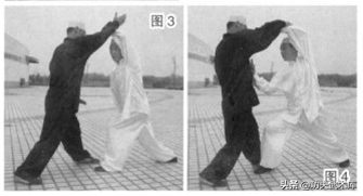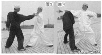 如有人用右拳击我前胸,我用左手外斜拥化敌击,随进步用右掌击敌胸。(如图3、4)