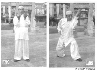 口诵:台斯迷(注:伊斯兰教的阿文,意思是奉普慈太慈安拉之命起,奉真主的命令行使。)每盘一把艺前必须先口诵台斯迷方可开始盘练。口诵台斯迷,有以一念代万念,认主独主一之意。承上势,双手从身体两侧向上捧到胸前,掌心向上,十指平心,肘心向上,沉肩,此为伊斯兰教的“接嘟哇”,意为真心诚意接受真主的恩赏之意。(如图1)。