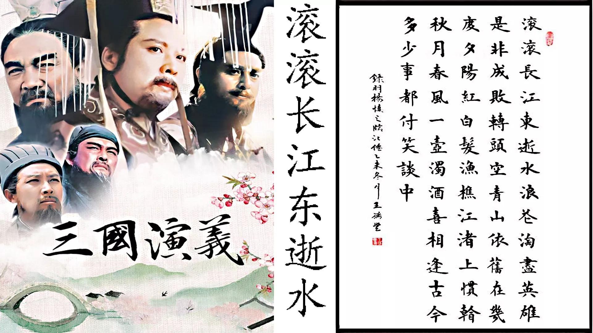 《三国演义》片头曲《滚滚长江东逝水》让我们仿佛看到了从东汉末年到西晋初年之间近105年的历史风云,群雄逐鹿,气势磅礴。也正因如此,《三国演义》它的开篇和结局较之其它三部多了一些浑厚、一些成王败寇的无情和逝水东流的无奈。难评曹孟德,心疼诸葛亮,不喜刘玄德,遗憾关云长……这一出出戏,任众人评说。