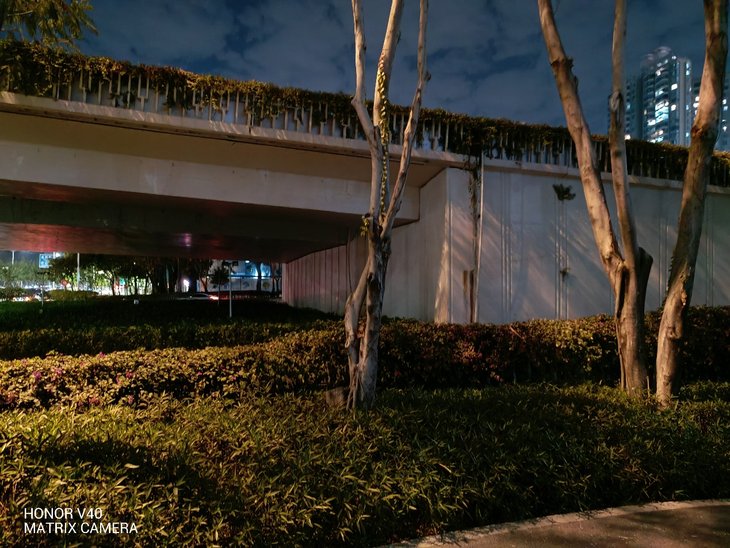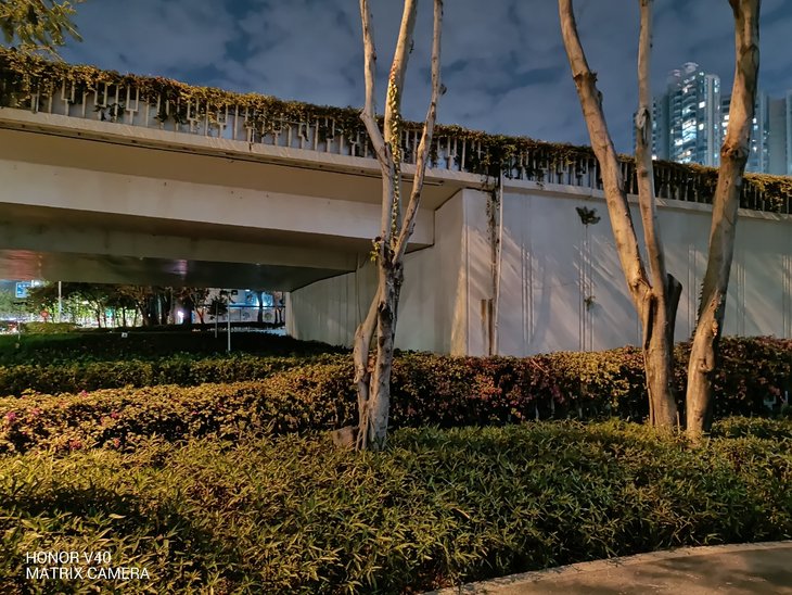 在夜拍方面,荣耀V40默认模式下对高光的压制就比较到位,拥有不错的纯净度。夜景模式下,照片的亮度要有明显提升,同时还能保持整体的质感。值得一提的是,夜景模式下的色彩相对要更准确一些,更加接近真实场景的色彩,整体观感要更优秀。