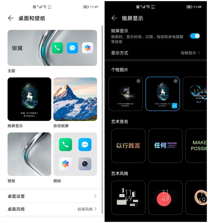 荣耀V40的AOD 画面可以使用自定义的照片,还可以拍照取色,将喜欢的配置应用到对应的AOD画面中,个性化选项更加丰富。Magic UI 4.0还具有AI字幕、全能翻译、多屏协同、隐私保护等便捷实用功能,能够带来更加全面优秀的使用体验。