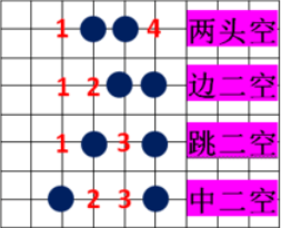 两头空——边二空,十字点为我们落子的地方。当我们摆放后对手基本无法阻止我们成型。