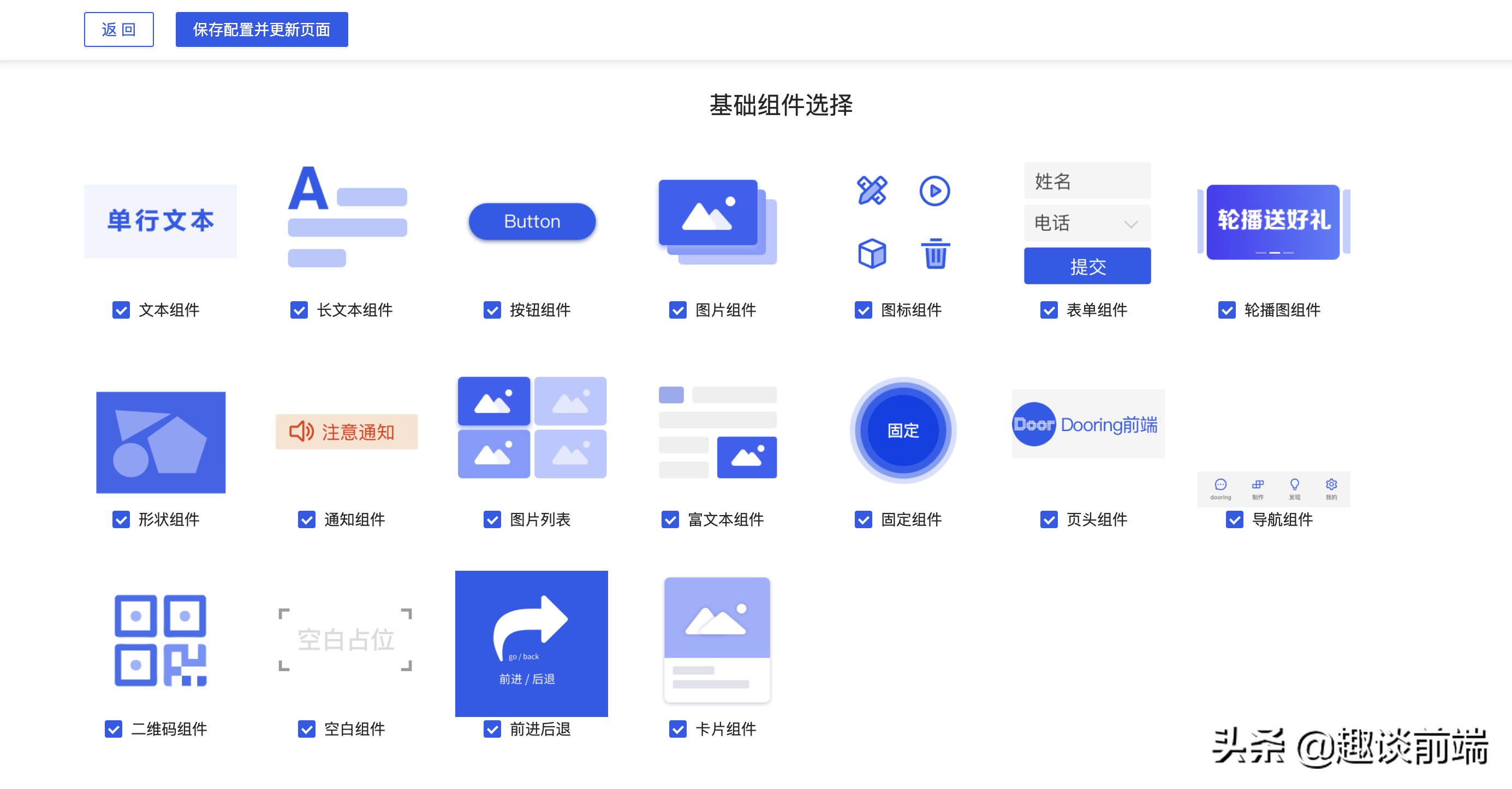 Dooring里面除了包含基础的图表、媒体、商品和功能组件之外,也为企业提供了组件定制的功能。